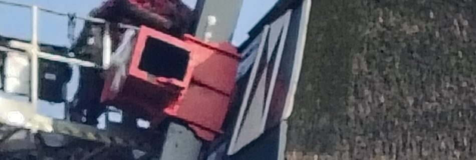 Vandaag heeft de molenmaker de eerste werkzaamheden verricht voor het vervangen van de roeden. Zoals op de foto’s te zien is van drie enden het hekwerk verwijderd.De planning is om aanstaande maandag en dinsdag de verdere werkzaamheden aan de roeden uit te voeren en de nieuwe roeden te plaatsen.
